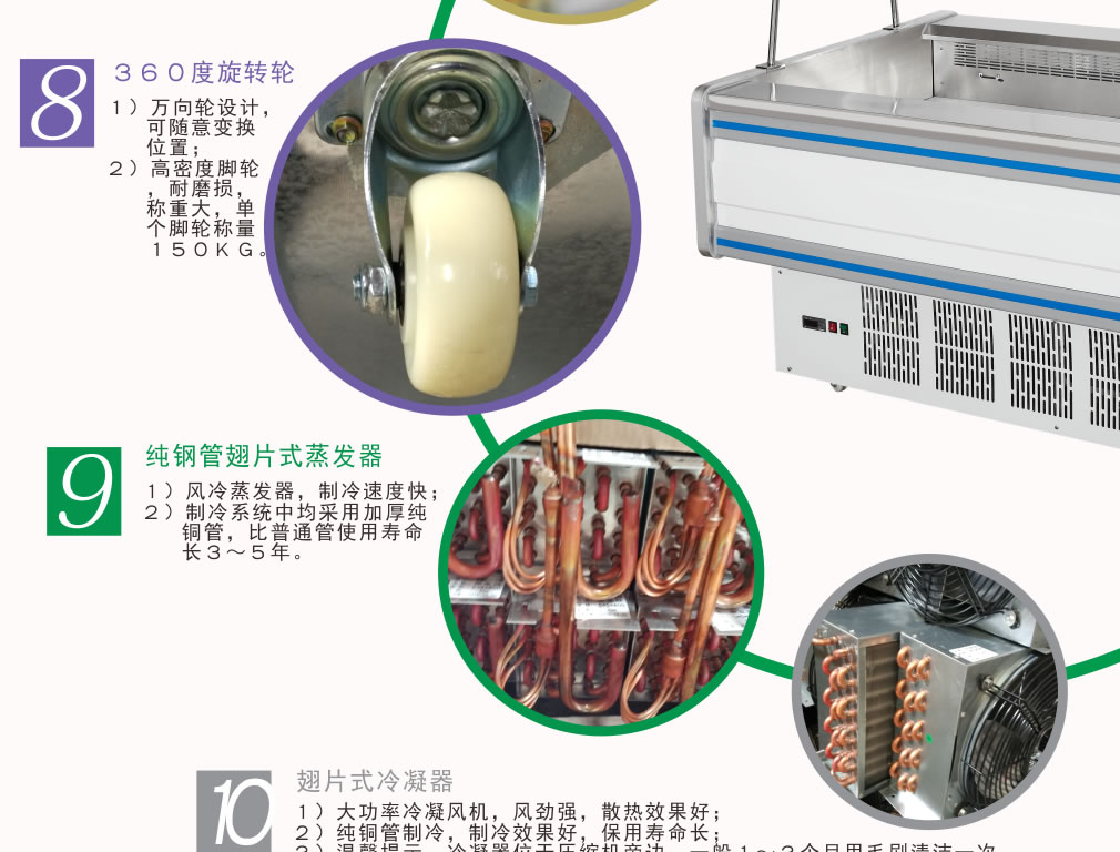 進口名牌機組,一體式/分體式制冷方式,真正做到低噪音,高能效,環(huán)保節(jié)能,安全,穩(wěn)定;超大面積純銅管蒸發(fā)器,制冷更均勻,速度更快捷;