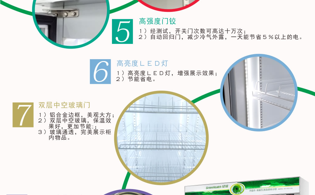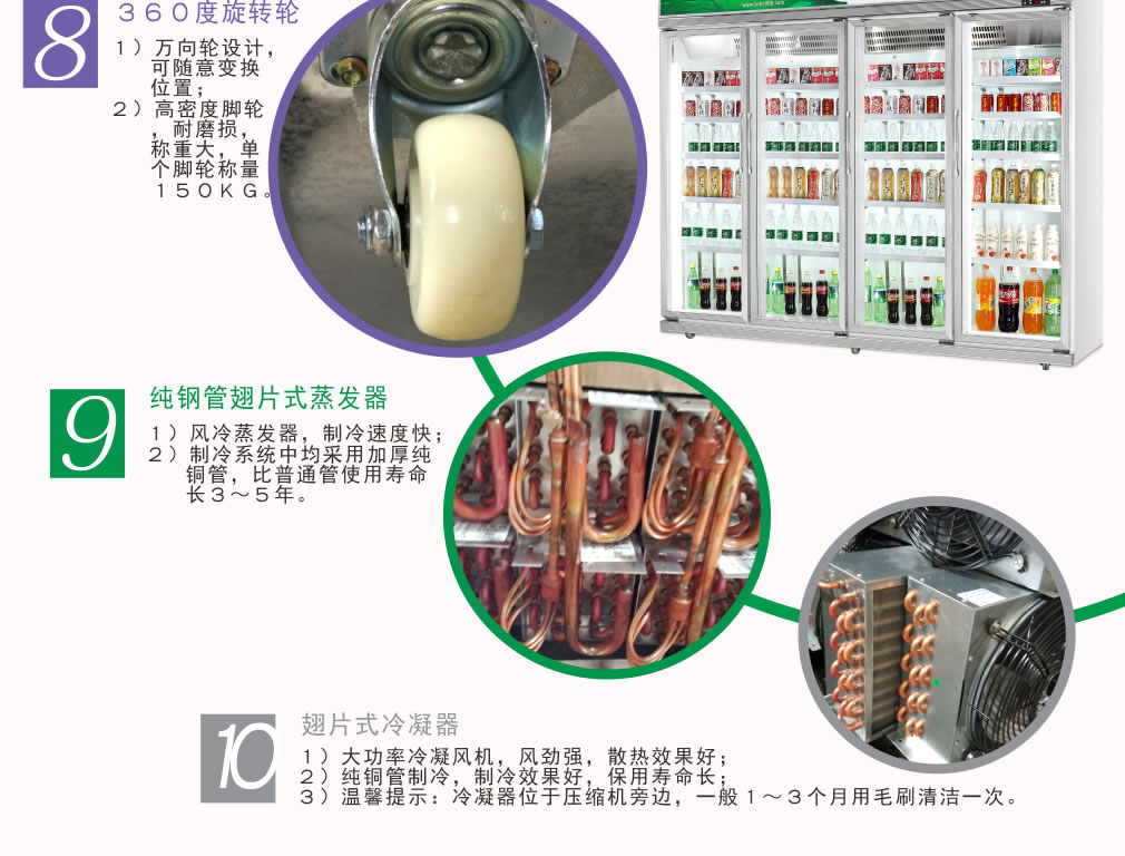 分體機(jī)組制冷效果高,室內(nèi)零噪音,全封閉門封,不銹鋼層架勾,微電腦溫控器,EBM冷風(fēng)機(jī),高強(qiáng)度門鉸,高亮度LED燈,雙層中空玻璃門,360度旋轉(zhuǎn)輪,純鋼管翅片式蒸發(fā)