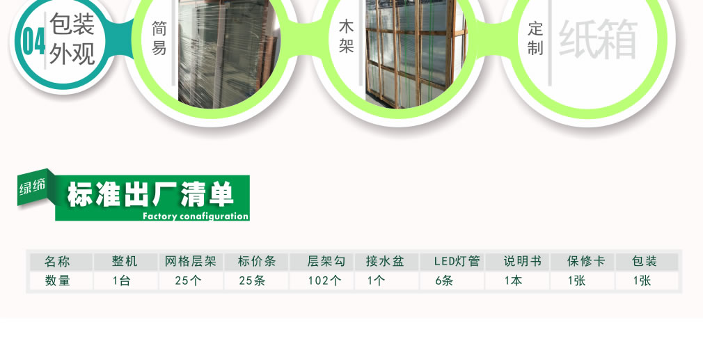 分體機組低澡音全封閉門封,不銹鋼層架勾,微電腦溫控器,EBM冷風(fēng)機,高強度門鉸,高亮度LED燈,雙層中空玻璃門,360度旋轉(zhuǎn)輪,純鋼管翅片式蒸發(fā)器,翅片式冷凝器