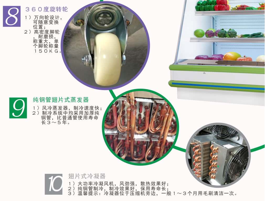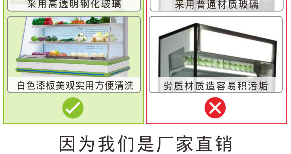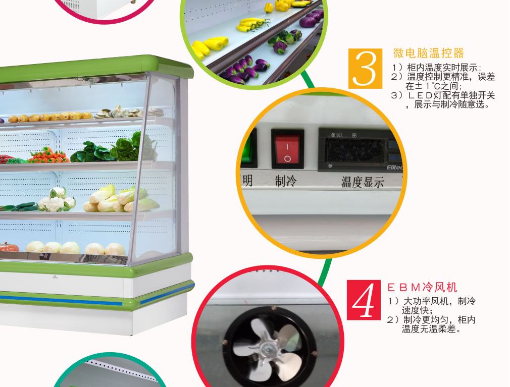 ① 風(fēng)扇或空調(diào)出風(fēng)口不能正對敞口式冷柜吹風(fēng);