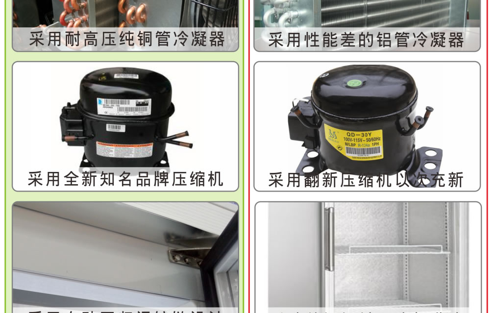全封閉門封,不銹鋼層架勾,微電腦溫控器,EBM冷風(fēng)機,高強度門鉸,高亮度LED燈,雙層中空玻璃門,360度旋轉(zhuǎn)輪,純鋼管翅片式蒸發(fā)器,翅片式冷凝器
