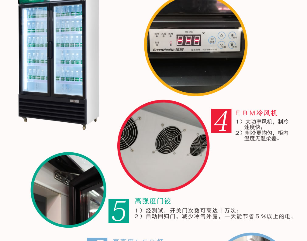 360度立體制冷,制冷更均勻,溫度更下平均,短時(shí)間內(nèi)迅速降溫,確保柜內(nèi)飲料更冰冷,機(jī)座透風(fēng)設(shè)計(jì),讓壓縮機(jī)更好發(fā)揮制冷,智能面板,溫度一目了然