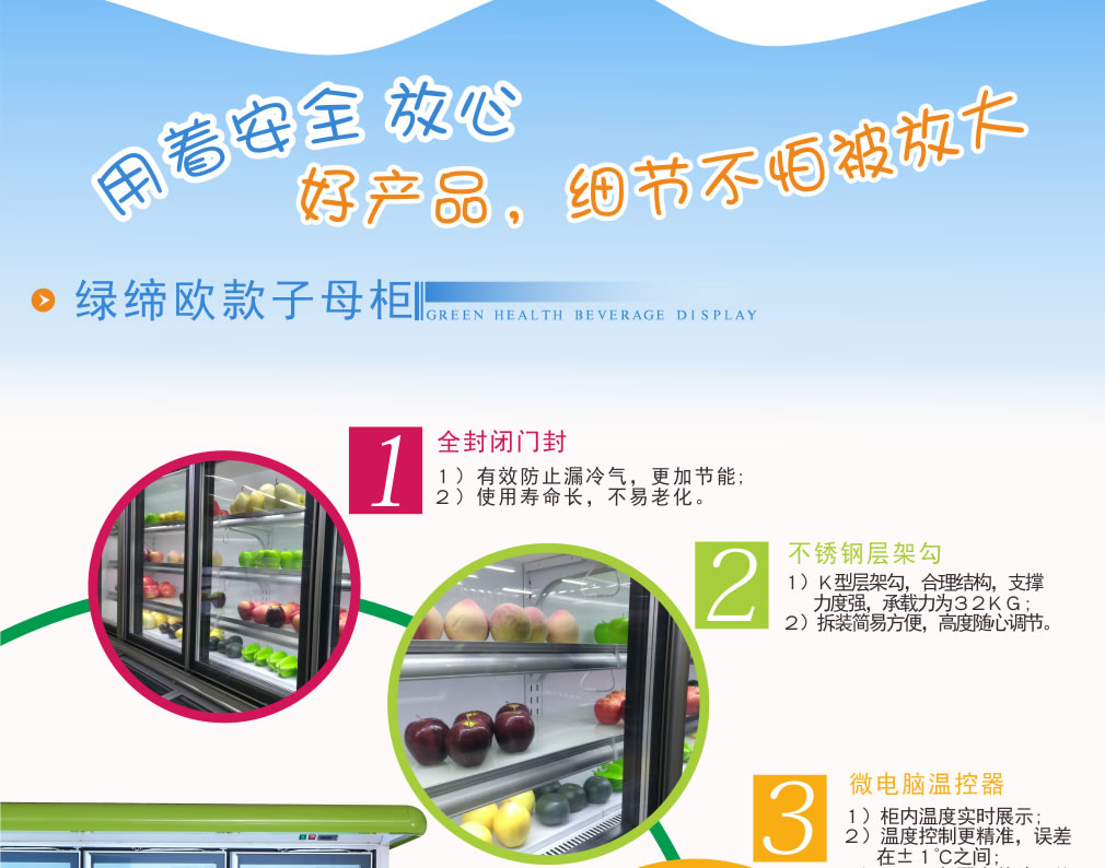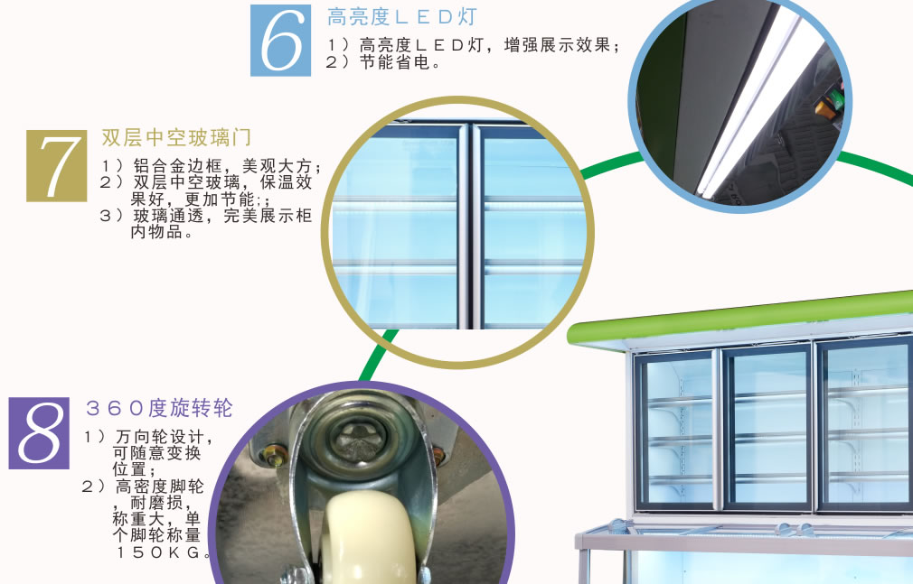 進口名牌機組,分體式機組,真正做到低噪音,高能效,環(huán)保節(jié)能,安全,穩(wěn)定;冷柜結(jié)構(gòu)緊湊,線條流暢,外觀豪華氣派,具有歐式風格; 流線型金屬邊條鑲嵌,不變形,耐腐蝕
