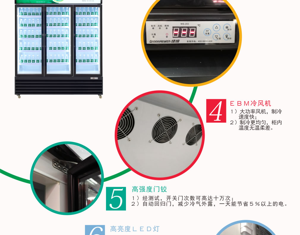 ④ 初次使用時,先空柜運行1小時左右,待柜內(nèi)溫度降下來后再逐步放入商品,盡量少量多次添加,柜內(nèi)不能添加過滿。